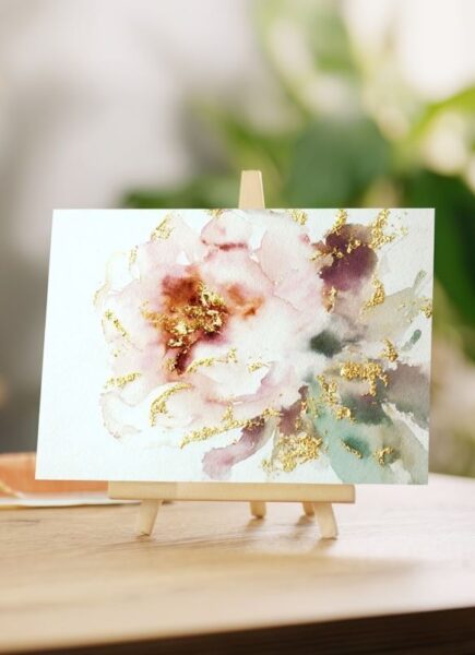 I still remember the first time I used gold leaf on a craft project. I was using it for an epoxy resin piece I was making. The moment the light hit that metallic shine, the whole piece felt more special and creative. Since then I have loved adding gold leaf to all kinds of crafts because it is such a simple way to bring a little sparkle and personality to handmade projects. Another way to use gold leaf are on miniature watercolor paintings, so pretty!