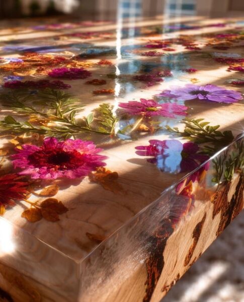The first time I saw a resin table with flowers sealed inside, I could not stop staring at it. It reminded me of pressing blooms in a book as a kid and wanting to keep them forever. There is something so special about turning simple flowers into a table you use every day. It feels meaningful, personal, and full of charm in a way that store bought pieces just do not match.