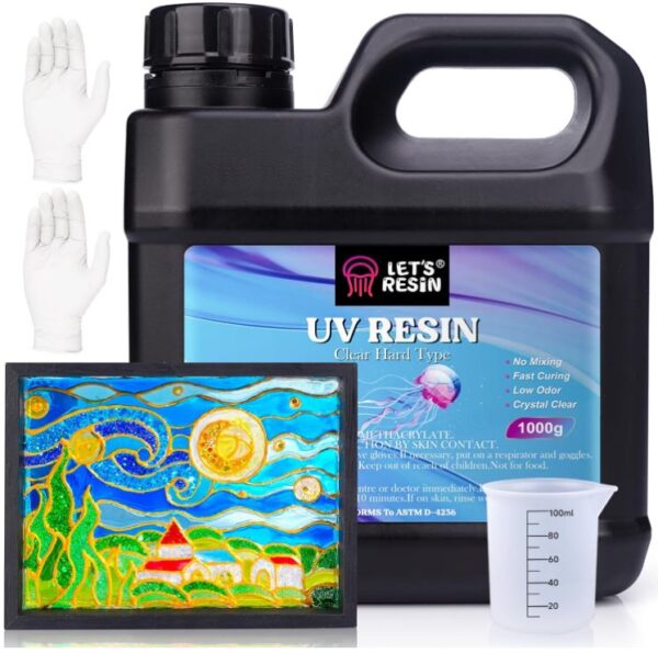 Using UV resin is pretty easy and fast. Just pour it into your mold or onto the surface you’re working on. You can add colors, glitter, or small decorations if you want. Then, shine a UV light over it or use a UV curing lamp for a few minutes and it will harden. You can build layers by adding more resin and curing each layer one at a time to create depth or designs.